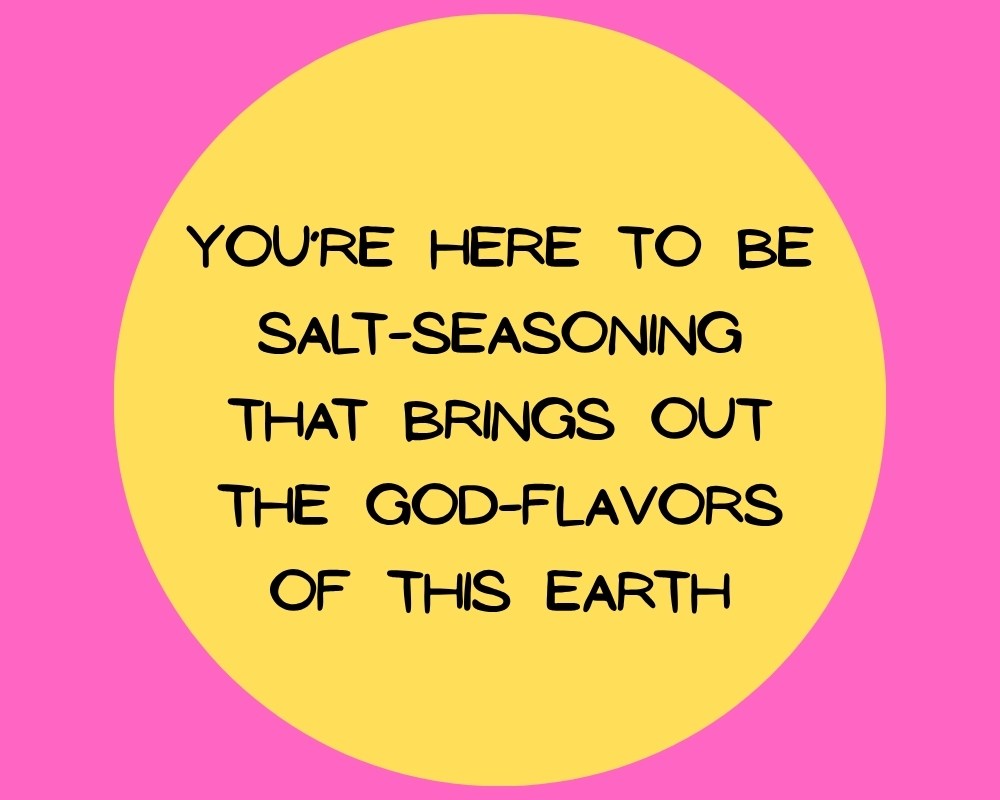 “Let me tell you why you are here. You’re here to be salt-seasoning that brings out the God-flavors of this earth. If you lose your saltiness, how will people taste godliness? You’ve lost your usefulness and will end up in the garbage.” Matthew 5:13 (MSG)