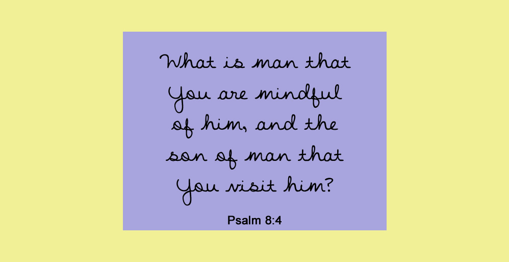“When I consider Your heavens, the work of Your fingers, the moon and the stars, which You have ordained, What is man that You are mindful of him, and the son of man that You visit him? For You have made him a little lower than the angels, and You have crowned him with glory and honor.” Psalm 8:3-5